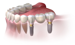 Punte dentară fixată pe implanturi: Dacă există mai mulți dinți lipsă într-o zonă, o punte dentară pe implanturi este alegerea potrivită. Aceasta permite înlocuirea confortabilă a unui sau mai multor dinți lipsă, conectând protezele între ele prin intermediul implanturilor.