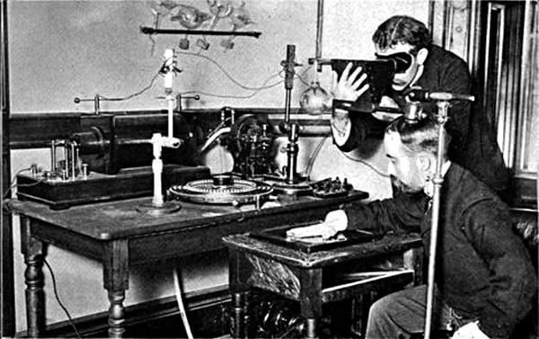 Fig. 1. Laboratorul lui Wilhelm Conrad Röntgen din Würzburg (1895), unde au fost realizate experimentele cu tuburi de descărcare în vid care au condus la descoperirea razelor X.