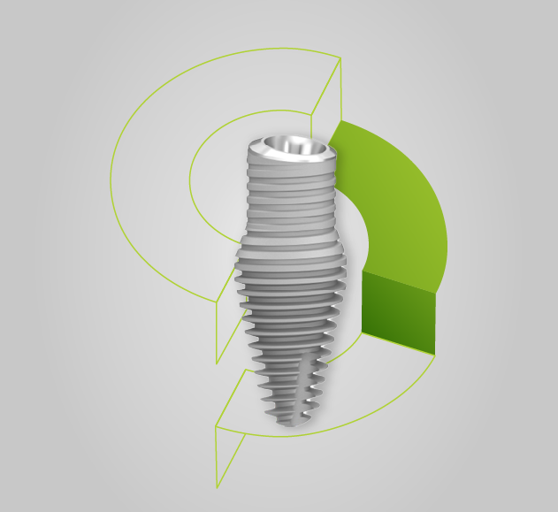 Implanturile sunt disponibile cu înclinații de 12∘ , 24∘ și 36∘, eliminând necesitatea bonturilor angulate scumpe și complexe.