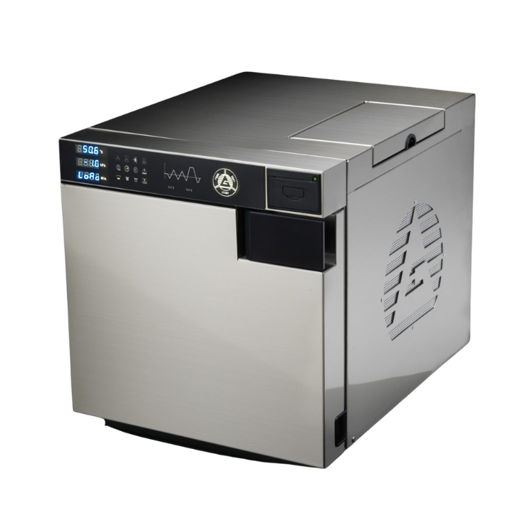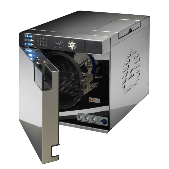 Interfața digitală intuitivă permite selecția rapidă a programelor de sterilizare, iar funcțiile de trasabilitate completă (prin imprimantă integrată și/sau export de date) facilitează documentarea ciclurilor, un aspect esențial pentru respectarea protocoalelor de calitate și a cerințelor de audit. Capacitatea de 23 litri face din Galbiati Prima o soluție echilibrată pentru cabinetele stomatologice individuale sau clinici de dimensiuni medii, unde eficiența fluxului de lucru și siguranța pacientului sunt prioritare.