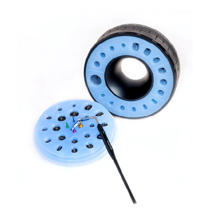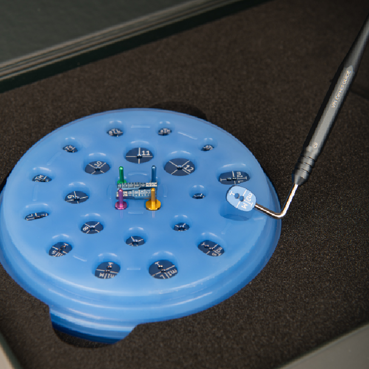 Cervico Premium Kit este un instrument reutilizabil, autoclavabil, conceput pentru identificarea intraorală, rapidă și precisă, a formei și dimensiunii potrivite pentru bontul de vindecare.