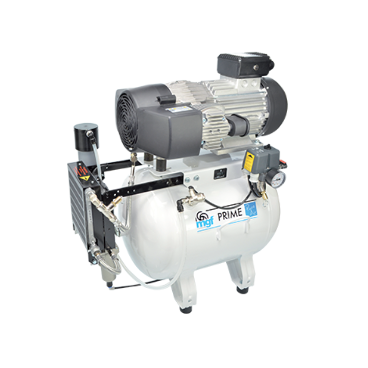 MGF 50/15 Prime M face parte din gama de compresoare fără ulei destinată utilizării profesionale în domenii în care calitatea aerului comprimat este esențială. Modelul este echipat cu uscător de aer cu membrană, care elimină eficient umiditatea și menține un aer complet uscat, prevenind formarea condensului și protejând echipamentele medicale sensibile.