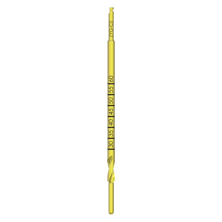 D-ZYG-CS este un instrument de tip countersink dedicat implantologiei zigomatice, utilizat pentru lărgirea controlată a porțiunii coronare a canalului osos, facilitând poziționarea corectă a gâtului implantului și reducerea tensiunilor la nivelul corticalei.