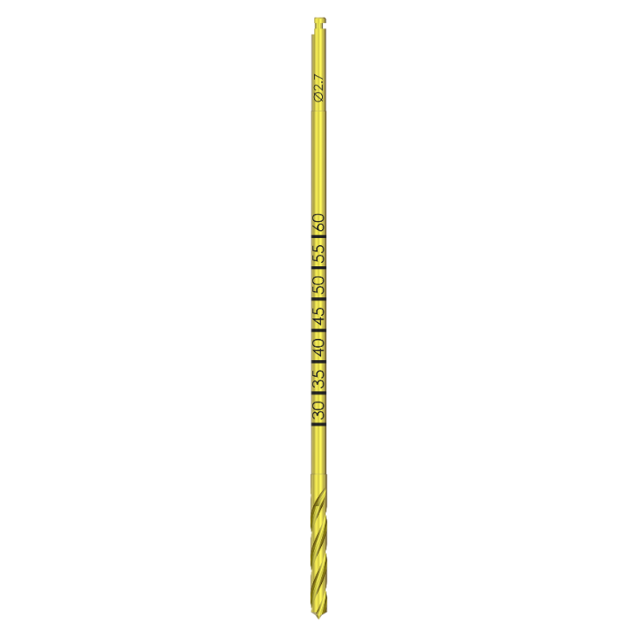Diametrul Ø2.7 mm permite lărgirea graduală a canalului osos, menținând controlul axial și reducând riscul de deviere în osul maxilar posterior și în osul zigomatic. Această etapizare este esențială în cazurile de atrofie severă maxilară, unde traiectoria implantului este lungă, oblică și traversează zone cu densitate osoasă variabilă.