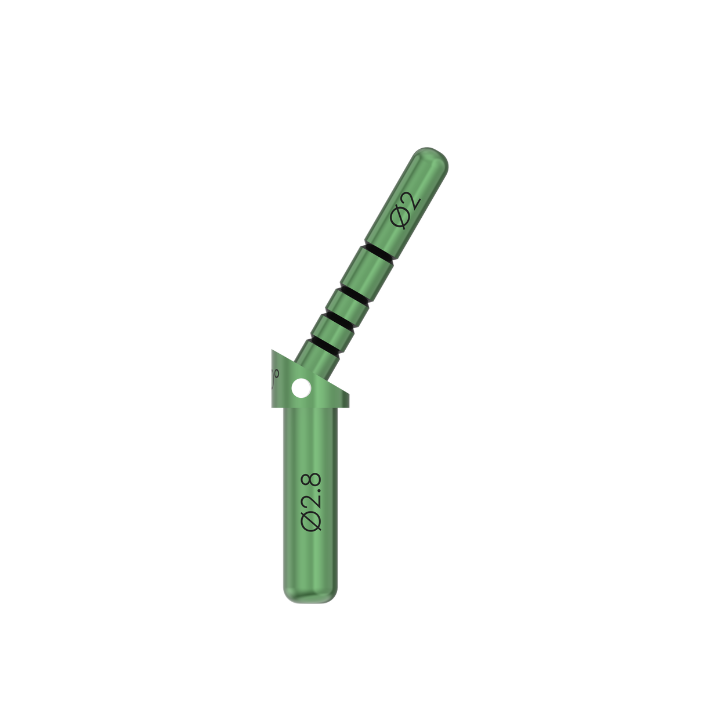 I-DI-30D este un instrument chirurgical reutilizabil, utilizat pentru verificarea și controlul direcției de preparare a osteotomiei în chirurgia implantară. Instrumentul prezintă un unghi de 30°, care permite evaluarea axei de inserare a implantului în situații clinice cu angulații accentuate, acces chirurgical limitat sau cerințe protetice complexe.