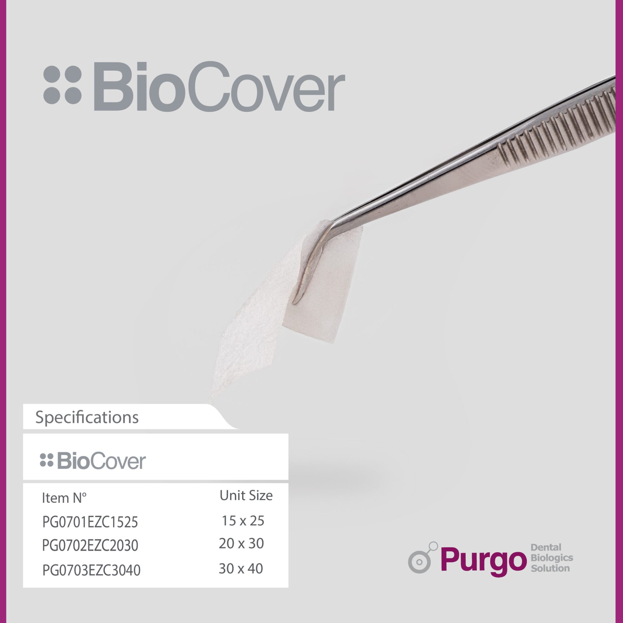 Membrana de colagen BioCover™, cu dimensiunile de 15×25 mm, este o membrană resorbabilă compusă din colagen de tip I de origine porcină. Membrana BioCover™ are o structură similară cu cea a colagenului uman și se caracterizează printr-o biocompatibilitate ridicată și o interacțiune excelentă cu celulele, deoarece în procesul de fabricație nu se utilizează agenți chimici de reticulare. BioCover™ este folosită în chirurgia parodontală și dentară, fiind plasată în zonele cu defecte parodontale, implanturi dentare, defecte osoase sau reconstrucții ale crestei alveolare, pentru a facilita vindecarea postoperatorie.