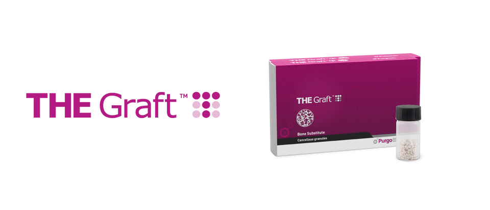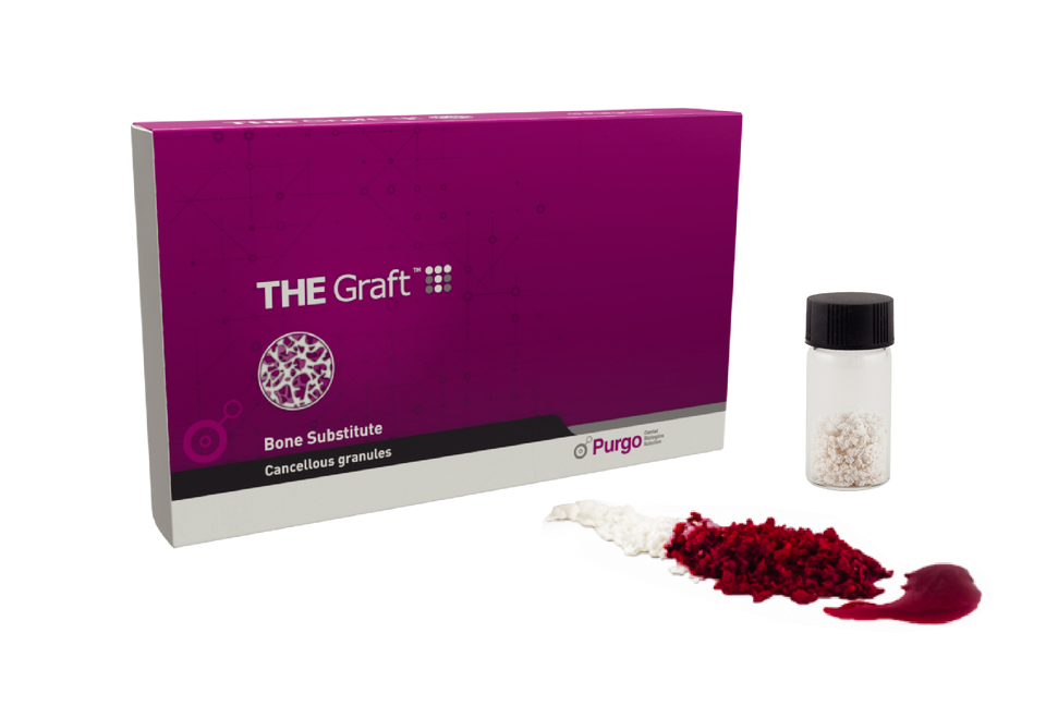• THE Graft™ — substituent osos de origine porcină, deproteinizat, cu structură minerală naturală (granule/seringă). Procesarea atinge cerințele ASTM F1581; material cu suprafață specifică mare pentru adsorbția proteinelor și ancorarea celulelor. Indicat pentru ARP/GBR, ridicări de sinus, defecte intraosoase.