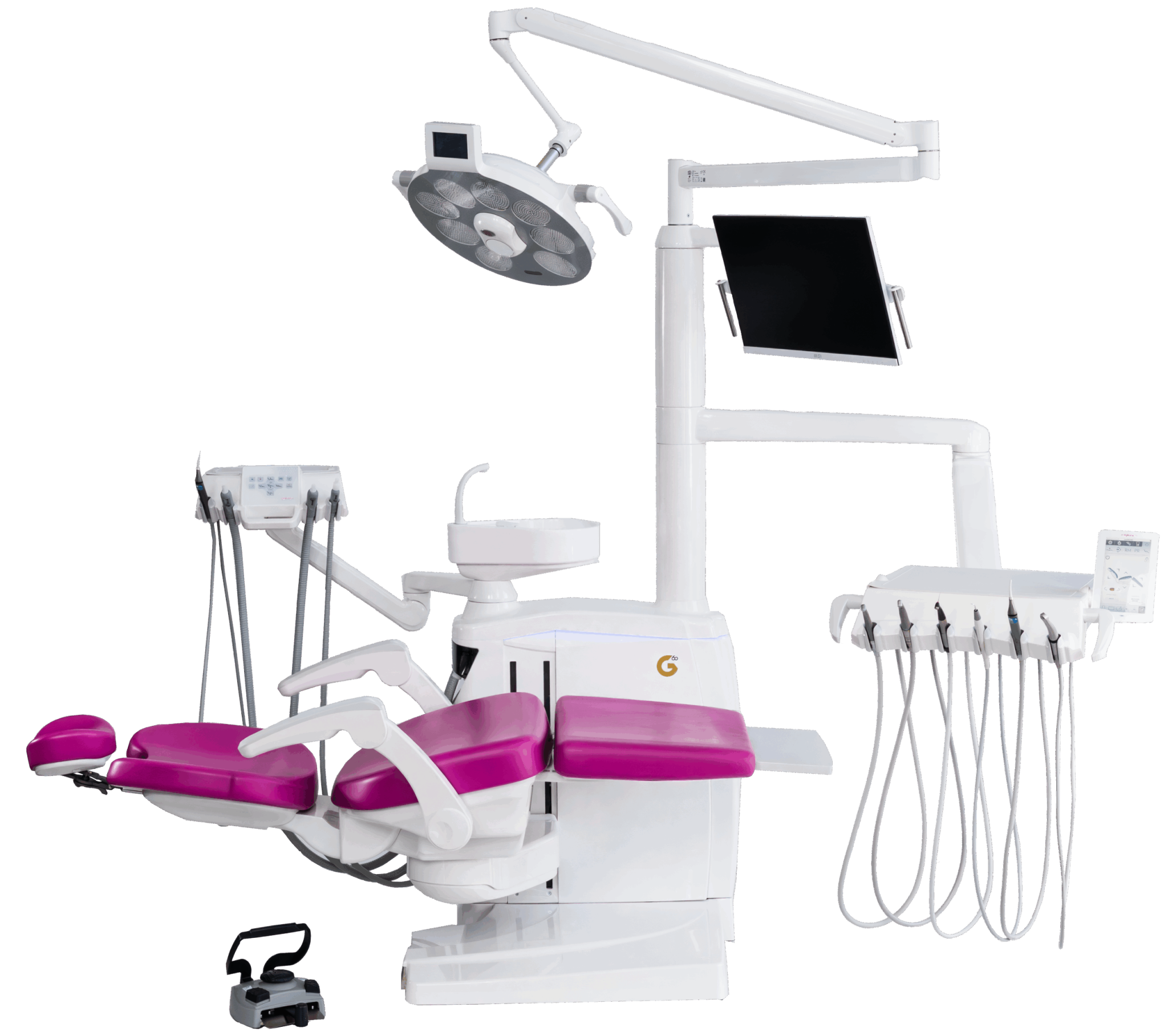 - Pedală multifuncțională electronică – controlează poziționarea, instrumentele, camera intraorală și funcția Cruise Control.