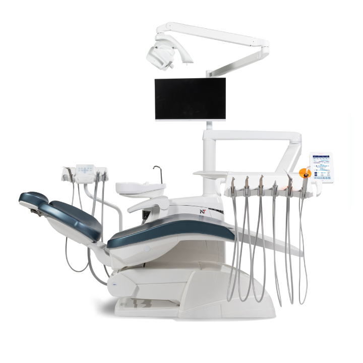 Unitul include sisteme eficiente de igienizare a circuitelor de apă, spălare integrată a canulelor de aspirație și componente autoclavabile în zonele de contact. Suprafețele netede și accesul facil la grupul hidric susțin respectarea protocoalelor moderne de control al infecțiilor. Sistemele de siguranță mecanice și electronice opresc automat mișcările scaunului în cazul întâlnirii unui obstacol, protejând pacientul și personalul medical.
